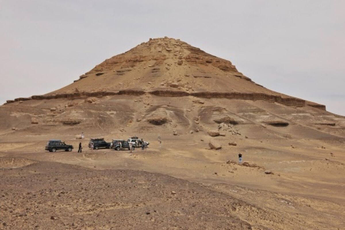 Brauciens ar džipiem atpakaļ uz Baharijas oāzi. Ekskursija El-Bawiti ciematā, lai apskatītu Sāls ezeru, unikālo Piramīdas formas kalnu, Angļu kalnu un palmu audzes - pretstatu tuksneša skatiem.