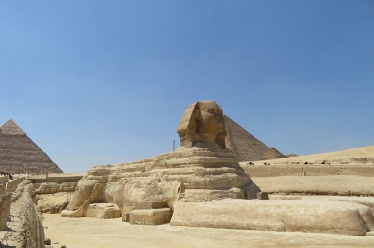 Gīzas kompleksā ir arī Sfinksa – milzu statuja ar lauvas ķermeni un faraona galvu – stāv netālu no piramīdām un tiek uzskatīta par vienu no pasaules lielākajām monolītajām statujām.
