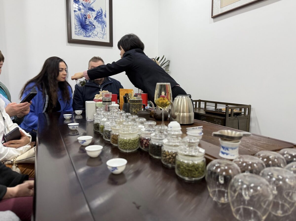 Dienas turpinājumā vēl kāds brīnišķīgs piedzīvojums, proti, tējas ceremonija. Kā zināms, Ķīnā tiek gan audzēta, gan ražota tēja. Viņiem ir arī savas tējas dzeršanas tradīcijas. Mūs uzņems sirsnīgi, sēdinās pie galda un pastāstīs gan par dažādām tējām, gan tējas dzeršanas kultūru.