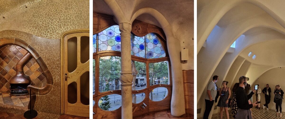 Tāpat aplūkosim īpašo Casa Batlo, kas īpaša ar tās dabas un ķirzaku iedvesmoto fasādi. Balkoni šķiet, atgādina ķirzaku galvas. Šo ēku Gaudi cēlis kādas ģimenes privātām vajadzībām- visa ēka reiz piederējusi kādai prominentai, ietekmīgai, un tomēr, drosmīgai ģimenei- viņi bija vieni no pirmajiem, kas ļāvās Gaudi vērienam un uzticējās viņa vīzijai. Ēkas izveidē tika ņemtas vērā tās topošo iedzīvotāju vēlmes, vajadzības un hobiji. Piemēram, vīru cigāru telpā un atpūtas telpā saimniekam patika sēdēt tuvumā kamīnam- Gaudi izveidoja telpu tā, lai tā būtu iespēami ērta, mājīga un patīkama, ļaujot saimniekam iekārtoties sēdēšanai un sarunām uz silta mūrīša, apaļu sienu ieskautiem. Dosimies apmeklēt šo ēku arī iekštelpās un piedzīvosim Gaudi iedvesmojošo klātbūtni!