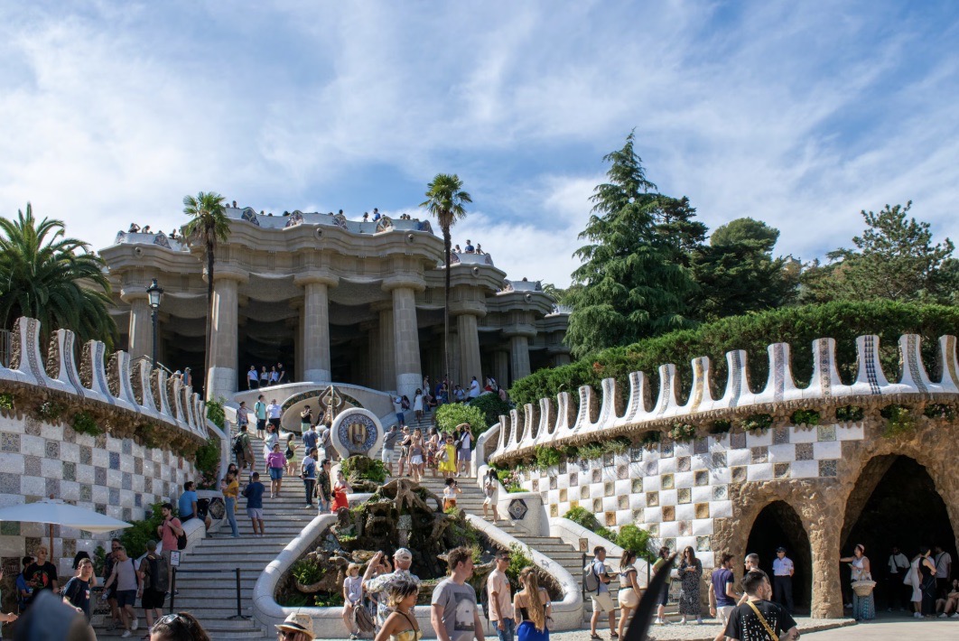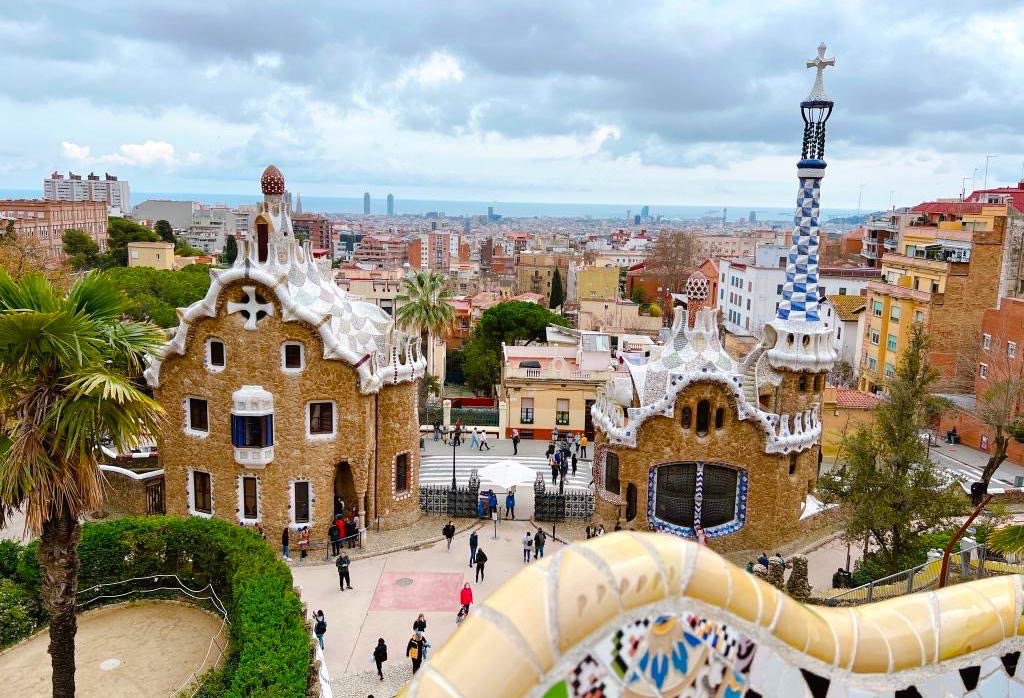 Atgriežoties pilsētā, piedzīvosim arī Antoni Gaudi projektēto Guell Parku, kas ir viens no lielākajiem arhitektūras mākslas darbiem Dienvideiropā. Šis parks ir kā paradīzes stūrītis Barselonā, kas to padara par ļoti iemīļotu apskates vietu gan vietējiem, gan arī ārzemniekiem. Parkā var apskatīt vienus no Gaudi krāšņākajiem arhitektūras darbiem. Tur redzamas viņam raksturīgās neierastās formas ēkas, spilgtās krāsas un abstraktās kompozīcijas. Kaut šis pašlaik ir visiem pieejams, un starp citu, deklarētiem Barselonas iedzīvotājiem bezmaksas pieejams parks, šis sākotnēji tika plānots kā dārgs , krāšņs un dabisks dzīvojamo ēku rajons. Ēkas šeit nepirka, Gaudi un viņa mecenāts metās darbos citos projektos un ar laiku parks tika ziedots Barselonas pilsētai publiskai lietošanai. Pabeigtas un attēlā redzamas ir sargu mājas un plānotā ēku rajona galvenie ieejas vārti. Sargu mājās izvietots suvenīru veikals un izstāde.