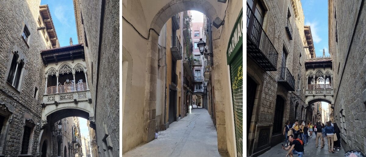 Šajā kvartālā apskatīsim Carrer del Bisb e . Tā ir arka, kas savieno divas ēkas - Palau de la Generalitat un Casa dels Canonges . To dizainēja pazīstamais arhitekts Antoni Gaudí un Joan Rubió i Bellver 1927. gadā. Sākumā projektā bija plānots izveidot vairākas ēkas šādā stilā, jo Joan Rubio vēlājās atjaunot pilsētu tikai gotiskā stilā, liekot pašvaldībai nojaukt visas ēkas, kas Barselonā nebūtu gotiskā stilā. Ekscentriskā arhitekta pārgalvīgā ideja tika noraidīta, tika atļauts būvēt tikai Carrer del Bisbe , un arhitekts bijis tik aizvainots, ka tilta arhitektūrā slepeni paslēpis galvaskausu ar nazi. Pastāv leģenda, ka cilvēks, tiklīdz to ieraudzīs, tiks pārņemts ar ļauno garu. Problēma, ka ejot zem tilta un to vērojot, galvaskausu pavisam viegli var ieraudzīt. Cita leģenda saka, ka, ja esat ieraudzījis šo galvaskausu tilta apaksā, ir jāiziet tiltam cauri, tad atpakaļgaitā, vairs uz galvaskausu neskatoties- tad ļaunais gars atstāsies.