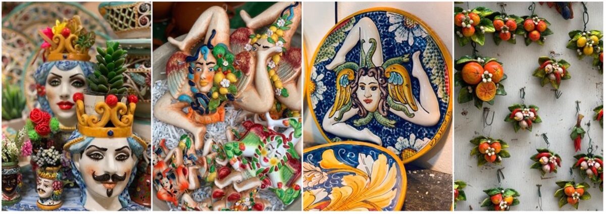 Sicīliešu keramika – koša un krāsaina. Gan šķīvji, gan košas māla saulītes. Noteikti Palermo ielās pamanīsiet arī īpašās sicīliešu cepures – coppole. Tās nav tikai suvenīrs, bet patiesi paši sicīlieši šīs cepures valkā.