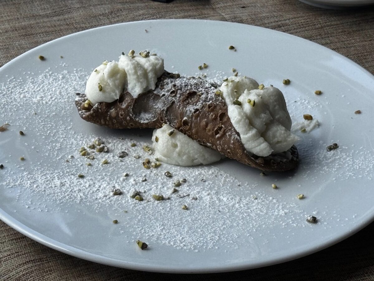 Bet saldajā - tradicionālie cannoli. Tās ir vafeļveida trubiņas, kas pildītas ar rikotas krēmu un dekorētas ar šokolādes gabaliņiem vai krāsainām sukādēm. Tik garšīgas. Tik saldas! Tasīte kafijas un varēsim doties tālāk.
