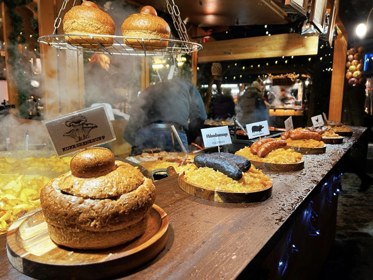Savukārt svētku tirdziņā bez daudzajiem iepirkuma stendiem, var nobaudīt arī tradicionālus Igaunijas ziemas ēdienus, arī šķovētus kāpostus ar desiņām. Tāpat gaisā virmos karstvīna smarža un ceptu mandeļu aromāts.