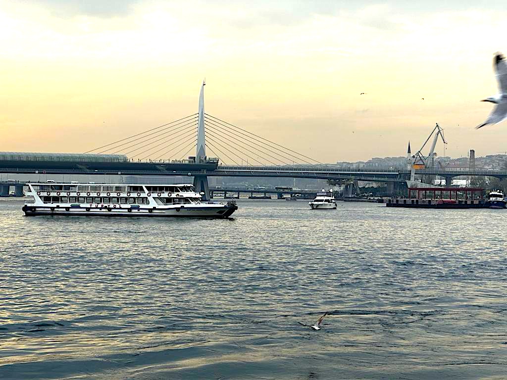 Lai labāk izprastu pilsētas apjomu un skatus, iesakām doties braucienā ar kuģīti (apmēram pusotra stunda) pa Bosfora šaurumu. Tas ļaus saprast, cik milzīga ir šī pilsēta, un arī uz brīdi pabūt Āzijā, īpaši, ja tajā nekad nav būts agrāk. Kuģītis parasti izbrauc pa šaurmu līdz pat Sultāna Mehmeta tiltam – pa ceļam var vērot Dolmabahce pili, kurā vēl pabūsim, kā arī citus krāšņus namus, mošejas un parkus.