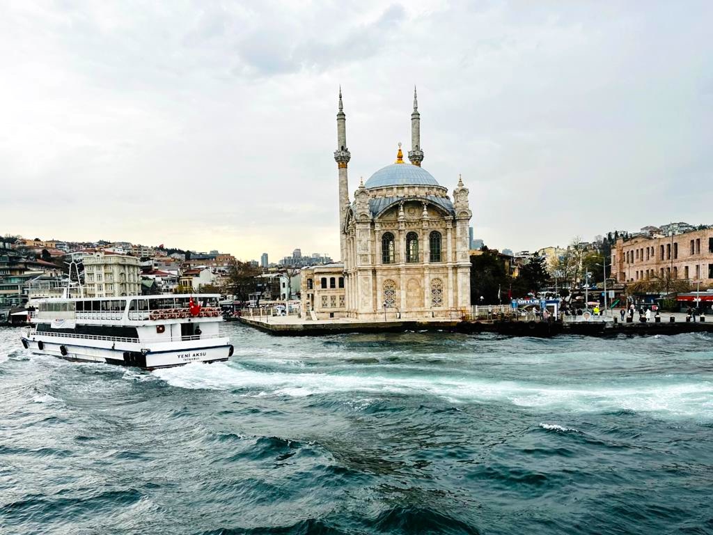 Lai labāk izprastu pilsētas apjomu un skatus, iesakām doties braucienā ar kuģīti (apmēram pusotra stunda) pa Bosfora šaurumu. Tas ļaus saprast, cik milzīga ir šī pilsēta, un arī uz brīdi pabūt Āzijā, īpaši, ja tajā nekad nav būts agrāk. Kuģītis parasti izbrauc pa šaurmu līdz pat Sultāna Mehmeta tiltam – pa ceļam var vērot Dolmabahce pili, kurā vēl pabūsim, kā arī citus krāšņus namus, mošejas un parkus.